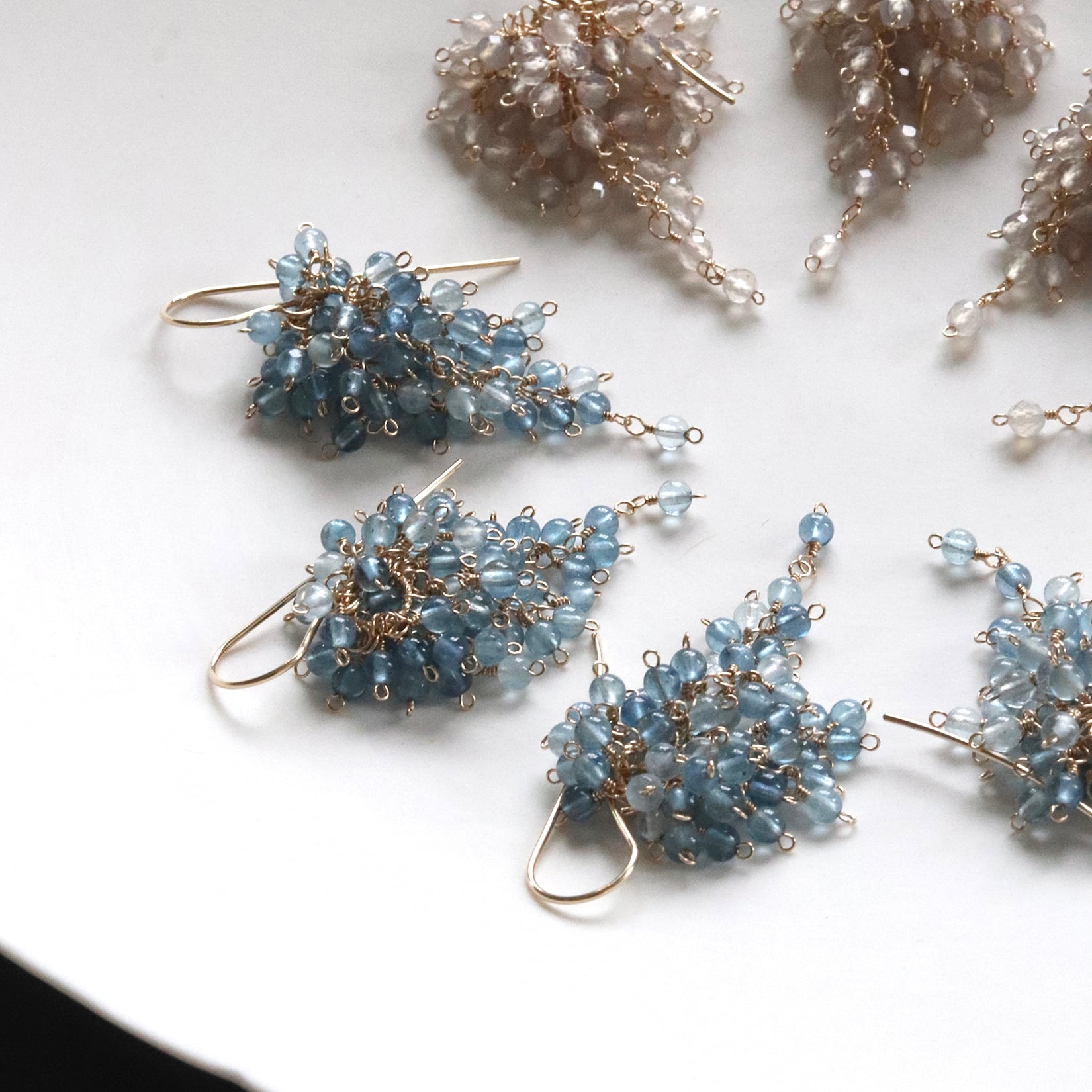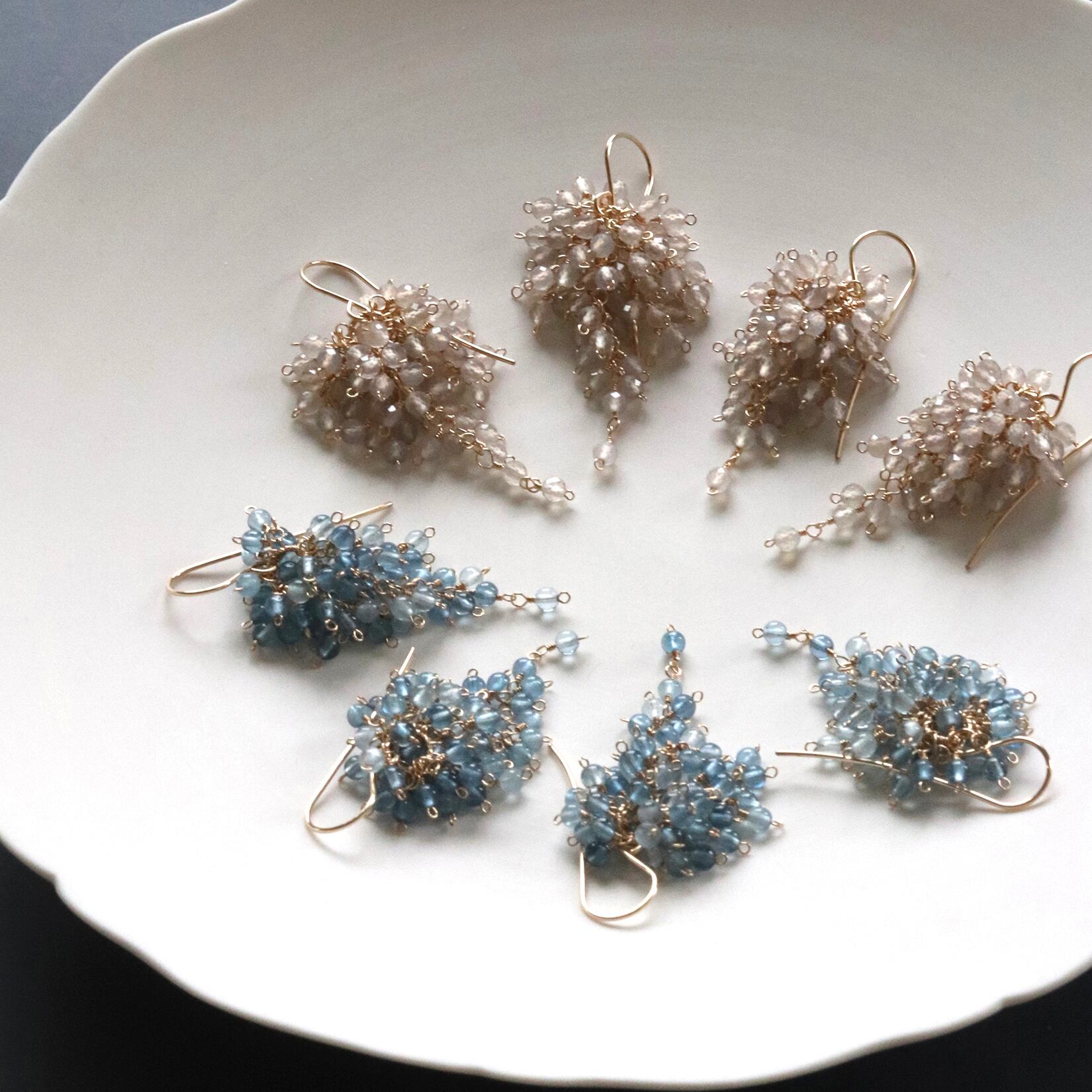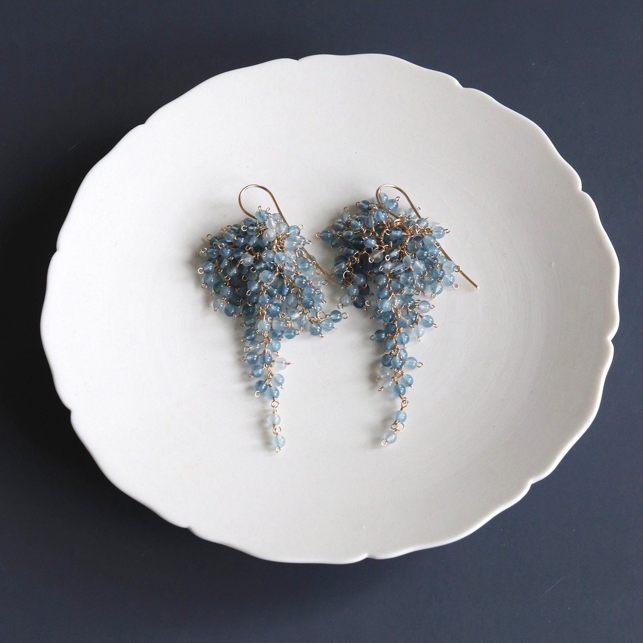 光があたったときの透明感と艶、そしてアクアマリンの美しい水色が耳元を爽やかみ華やかに演出してくれます。